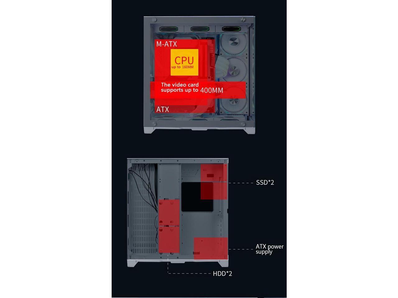 - Powerful Cooling System - Supports up to 7 fan mounting positions,compatible with 360mm water cooling configurations,, providing excellent cooling performance and cool lighting effects.