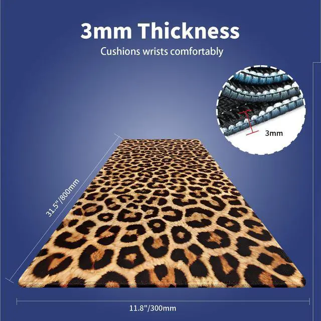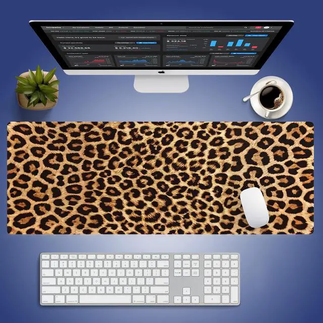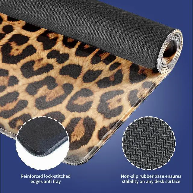 Extra Large Gaming & Office Mouse Pad ( 31.5" x 11.8" ) Vintage Retro Leopard Print, Premium Anti-Slip XXL Desk Mat with Durable Stitched Edges