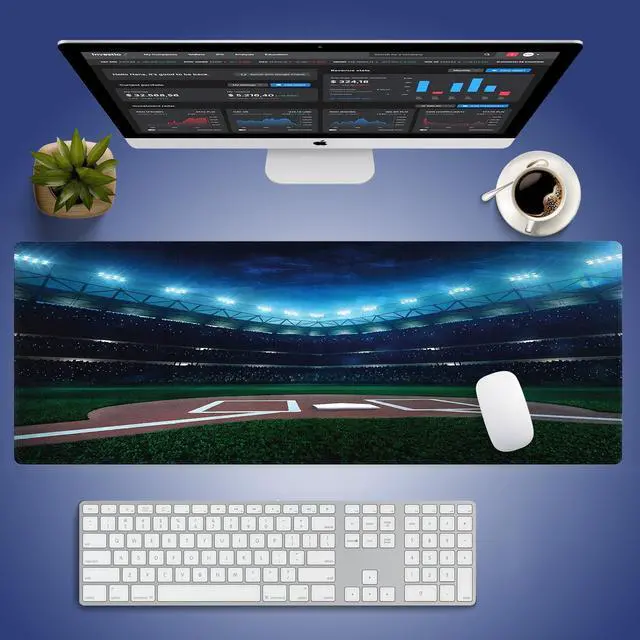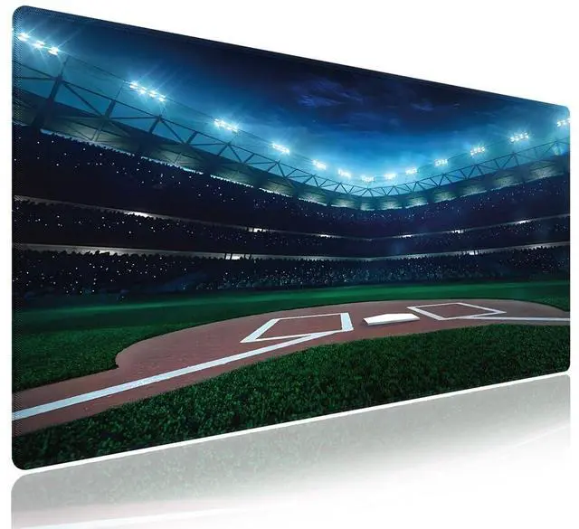 Extra Large Gaming & Office Mouse Pad (31.5" x 11.8") with Durable Stitched Edges Professional Baseball Field at Night Vibrant Playground Stadium League Theme Print, Anti-Slip XXL Desk Mat