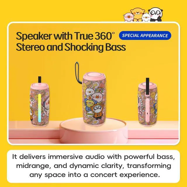 Portable Bluetooth Speaker with Lights, IPX5 Waterproof Outdoor Speaker ,Stereo Sound Loud ,8H Long Playtime, for Home/Party/Outdoor/Beach, Stocking Stuffers, White Elephant Gifts Portable Bluetooth Speaker,Long lasting outdoor speakersCute cartoon speakerWaterproof Outdoor SpeakerLoud sound speakersHigh quality stereo speakersBeach Travel SpeakerCamping speakersChildren's favorite speakersLuminous speakersPink cute cartoon speaker