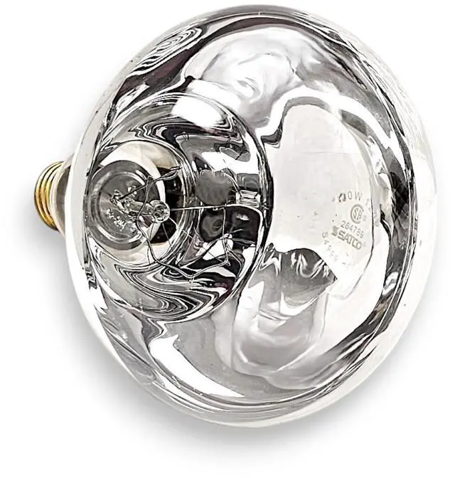 HEAT LAMP. AC Domestic Use Only. Full Warranty; Length from Base to end of bulb 5inWidth of bulb 4-5/8, 250w, 115-125 volts, BR40 Infrared ReflectorColor: Clear