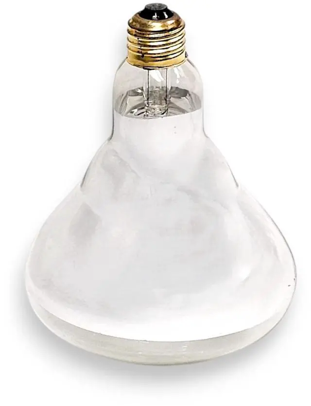 HEAT LAMP . AC Domestic Use Only. Full Warranty; Length from Base to end of bulb 5inWidth of bulb 4-5/8, 250w, 115-125 volts, BR40 Infrared ReflectorColor: Clear