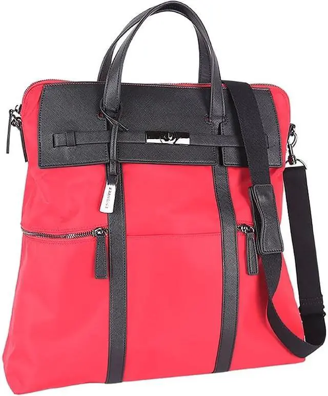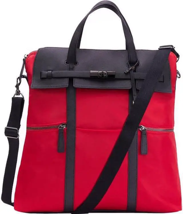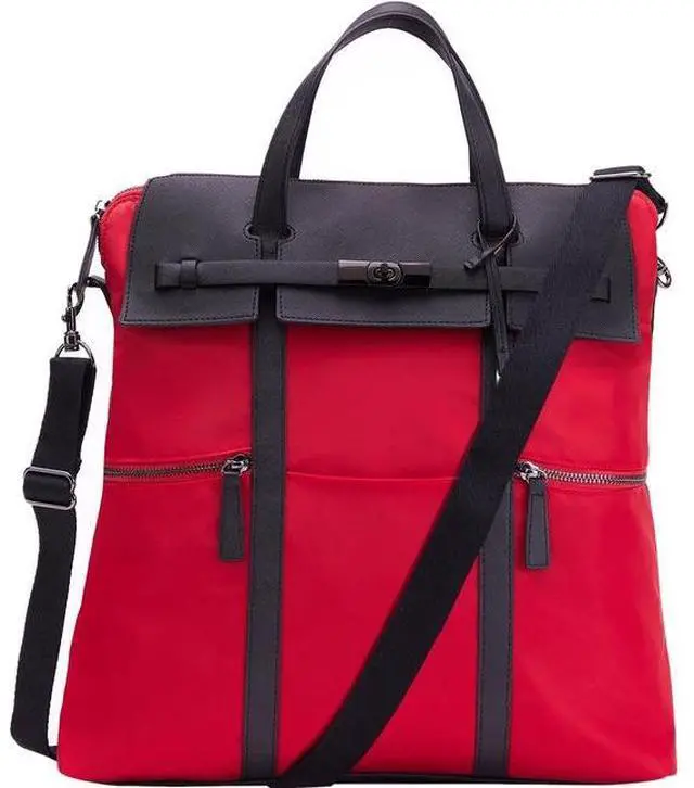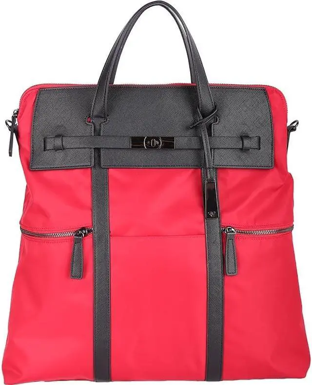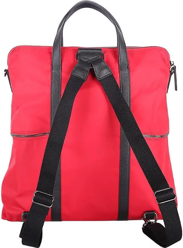 Style:Backpack/ToteCarrying Options:Shoulder Strap,HandleMaximum Screen Size Supported:15"Laptop Compartment:YesClosure Type:ZipperColor:RedMaterial:Nylon,Vegan Leather TrimHeight:16"Width:4.5"Depth:15.5"Weight (Approximate):1.75 lbApplication/Usage:Notebook,Accessories