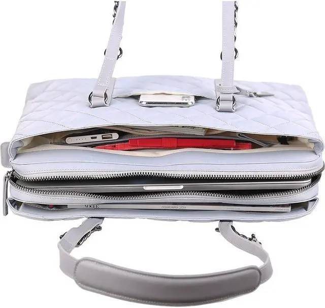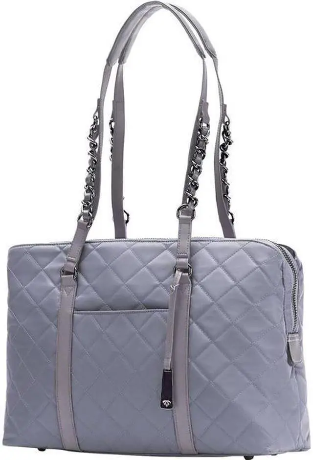 Style:ToteCarrying Options:Trolley Strap,Shoulder StrapMinimum Screen Size Supported:14"Maximum Screen Size Supported:15"Laptop Compartment:YesTablet Compartment:YesClosure Type:Zipper,MagneticColor:GrayMaterial:Nylon,Vegan Leather TrimHeight:9.5"Width:6"Depth:15.5"Weight (Approximate):2 lbApplication/Usage:Notebook,Tablet,Accessories