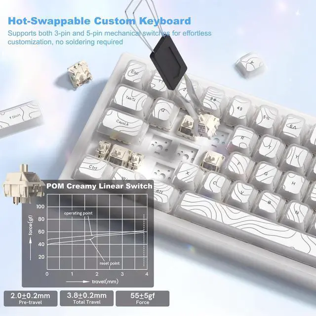 Wireless Mechanical Keyboard, 60% Creamy Keyboard