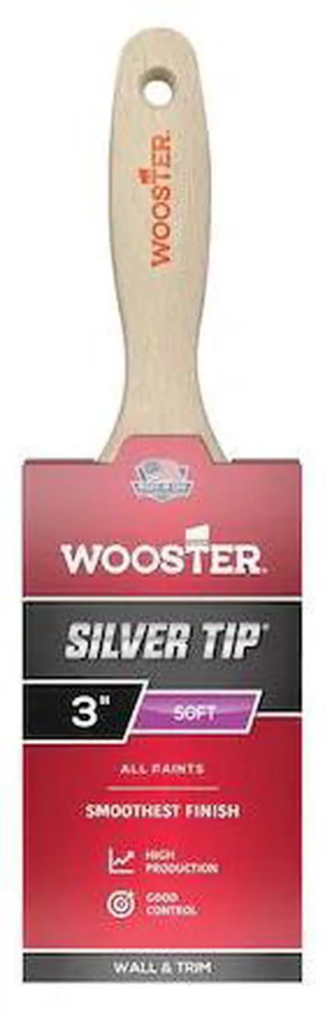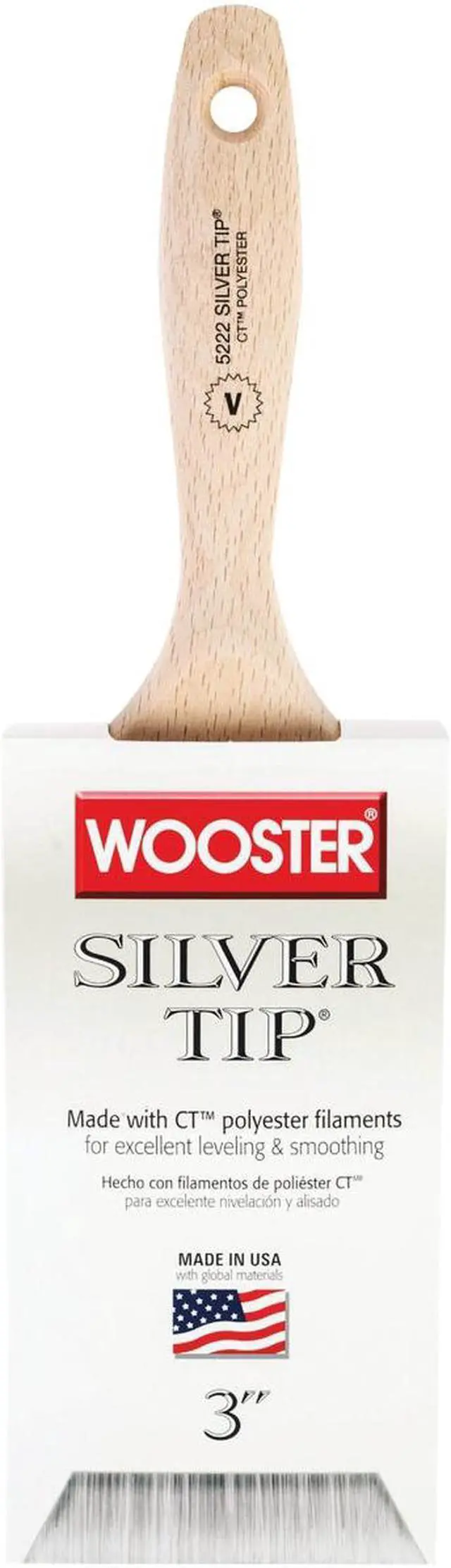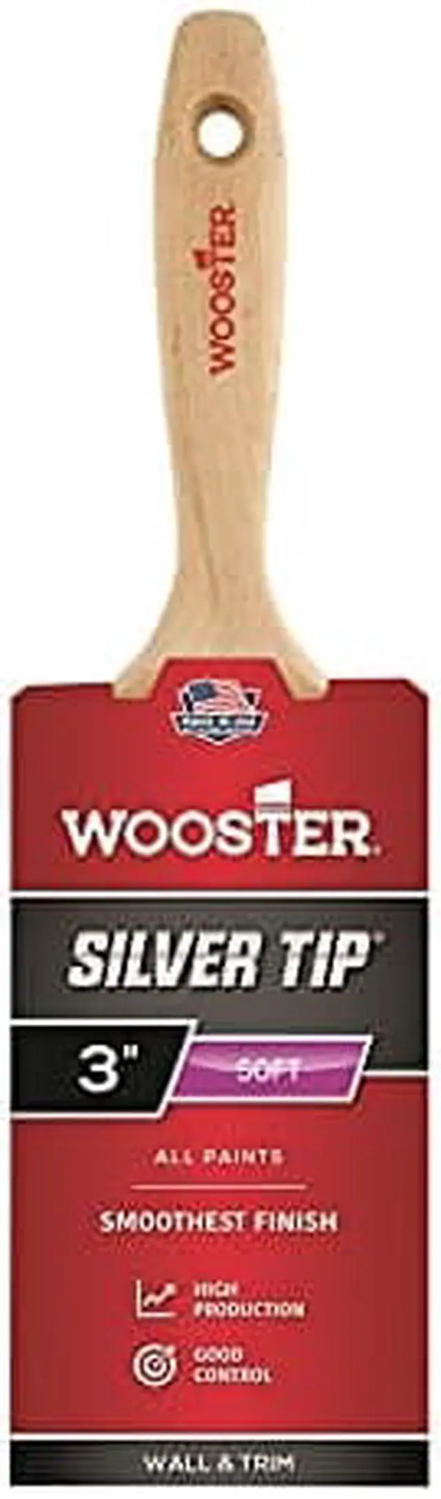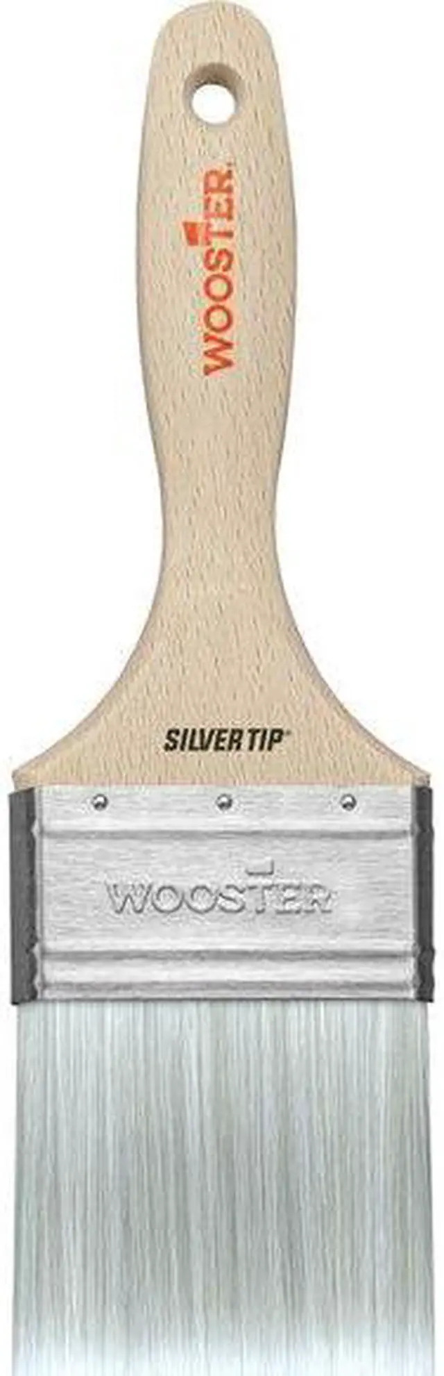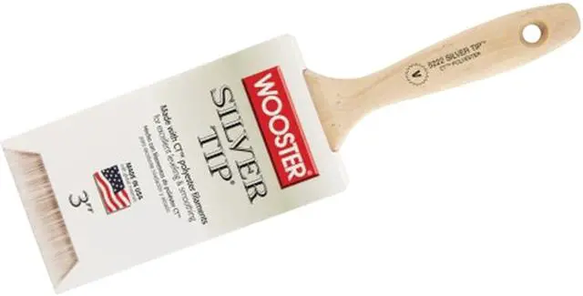 Wooster exclusive CT (Chemically tipped) polyester filaments are what give Silver Tip brushes their luster. These filaments have a full body feel yet they're very thin, flexible, and soft to virtually eliminated brushmarks. The responsiveness and bend recovery of these brushes are perfect for delivering sharp, single pass cuts. Silver Tip brushes provide excellent leveling and smoothing with all paints, but are especially suited for applying enamels to metal, varnish or polyurethane on wood, and thinner water-based coatings. Stainless Steel Ferrule. Hardwood handle. Brush Head Width (In.