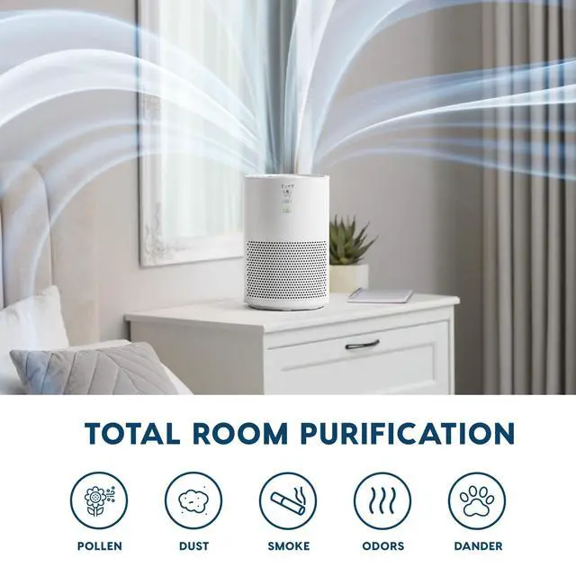 SLEEK & STYLISH DESIGN: Its modern, compact size (8.3"L x 8.3"W x 12.2"H) allows it to blend seamlessly into any décor enhancing any rooms aesthetic while effectively purifying your home.