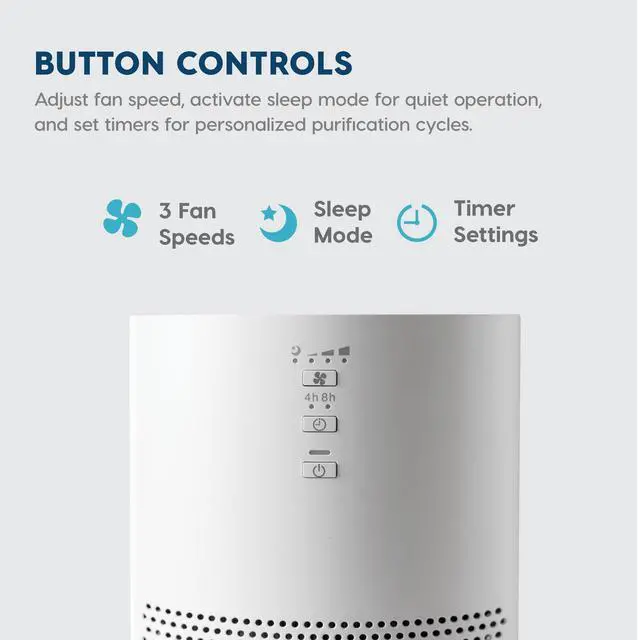 QUIET OPERATION & TIMERS: With three fan speed settings (Low, Medium, High) the low speed operates at just 28.4 dBperfect for peaceful sleep or work environments. Take advantage of convenient timer options (4- and 8-hour) for added flexibility.