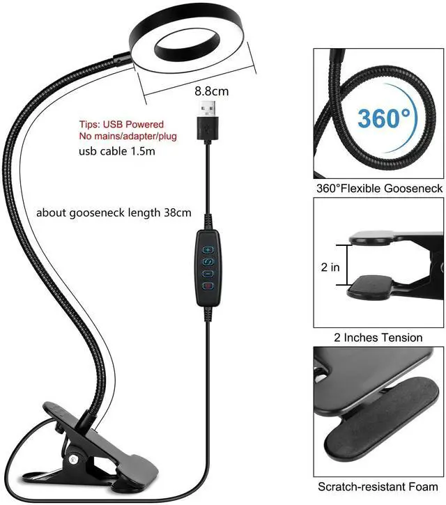 - Free to adjust the lighting angle by Flexible Gooseneck