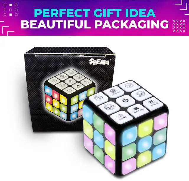 Toysery Flashing Cube challenges your mind with 7 lightning-fast games! Boost memory, reflexes & brainpower with dazzling lights & sounds. Perfect for solo play or epic multiplayer battles! Ages 8+, batteries not included.