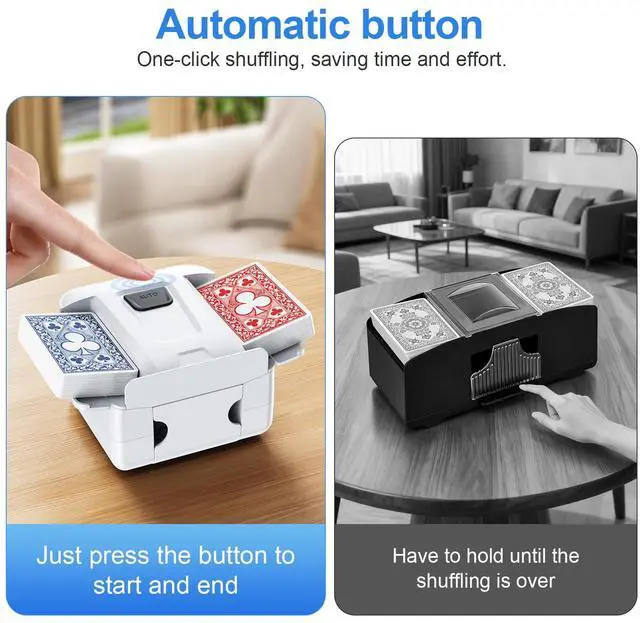 Fast and Smooth OperationShuffles 1 deck of cards in just 2 seconds, with no easy jams to save time. Noise stays below 80dB, so it wont ruin party vibes and keeps entertainment relaxed