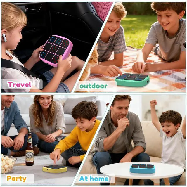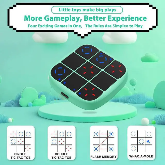 4-IN-1 Rechargeable Handheld Game Console: This tic-tac-toe electronic game is an upgraded rechargeable 4-in-1 handheld console, combining classic tic-tac-toe, two-man battle, memory flash and whack-a-mole. No need for 2 AAA batteries (upgrade from battery-powered to rechargeable), saving your cost and being more eco-friendly. It's not just a game, but a complete entertainment package for kids and adults, ideal for family game nights or friend gatherings.