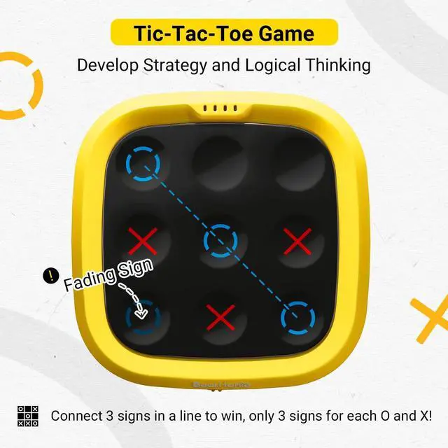 4-in-1 Fun Modes: Challenge yourself with solo Tic Tac Toe (easy/hard), duel a friend, or test memory in 9-level Symbol-Rush! Perfect for ages 3+ to sharpen logic & focus, a must have kids' electronics