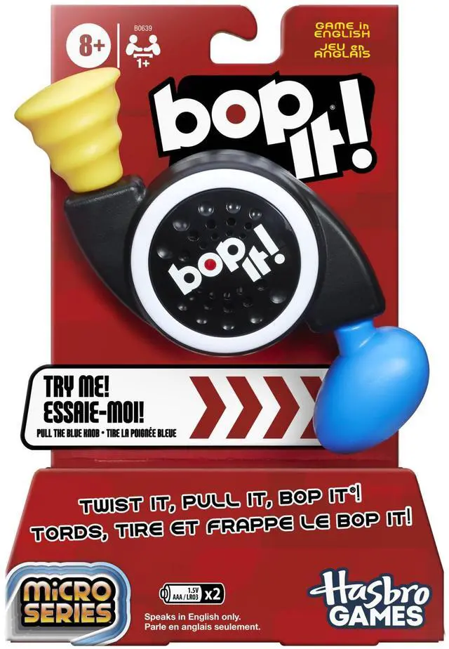 COMPACT BOP IT! GAME UNIT: It's the popular electronic Bop It! game in a smaller, compact size. It's small enough to fit in the palm of your hand, but big on delivering the fun