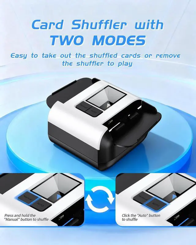 Effortless One-Touch AutomationExperience the ultimate convenience with just one press of the "AUTO" button. Our smart shuffler automatically senses the cards and stops when the shuffle is perfectly complete. No more holding down buttonsyour hands are free for dealing, snacks, or strategy.