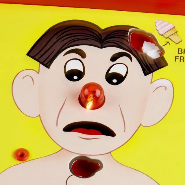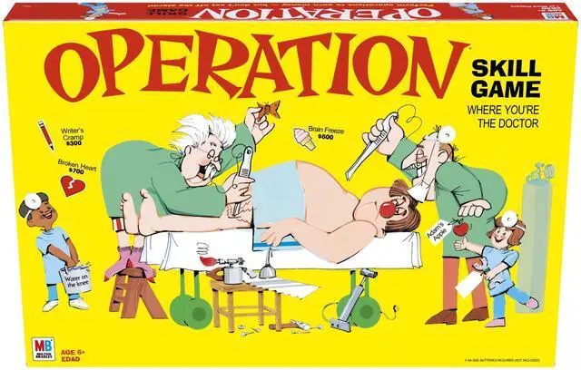 It’s the Operation electronic board game, a Family Game Night favorite, featuring hilarious ailments! The patient, Cavity Sam, is a little under the weather. Who can avoid the buzz and help him recover without lighting up his red nose?