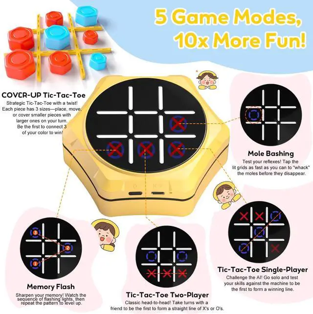 5-in-1 Game Modes: Go beyond the traditional X's and O's. Challenge the built-in AI (Human-vs-AI), compete with a friend (2-Player), test your focus with Memory Mode, sharpen your reflexes with Whack-a-Mole, or enjoy the timeless Classic Tic-Tac-Toe.