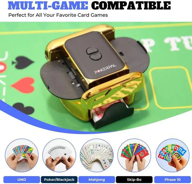 POKERPAL Automatic Card Shuffler for 1-2 Decks, Dual Mode Card Shuffler with Auto-Stop Function, USB-C Rechargeable Battery, suitable for UNO, Skip-Bo, Poker, Blackjack, Texas Hold’em