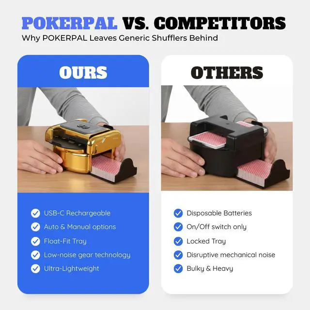 Customer Reviews of the Generic Brand POKERPAL Automatic Card Shuffler for 1-2 Decks, Dual Mode Card Shuffler with Auto-Stop Function, USB-C Rechargeable Battery, suitable for UNO, Skip-Bo, Poker, Blackjack, Texas Hold’em