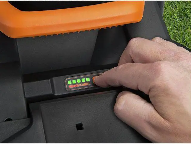 - Charge indicators right on the batteries tell you how much mow you have left to go