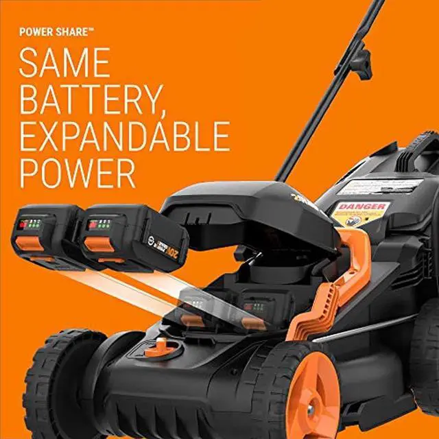 - Powerful 14-inch cutting width, 40-volt max lithium-ion mower with 2 removable 20-volt 4.0Ah power share batteries