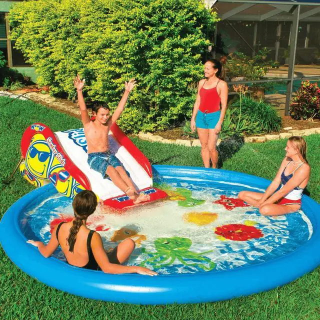 ADD to your PAD with WOW's Soaker Splash Pad Slide. This easy-to-set-up inflatable has a tunnel that fits over the pontoons of our WOW Splash Pads for secure stable sliding. Built-in soaker sprinkler creates a wet fast sliding surface that connects easily to any standard garden hose. EZ boarding step design with molded handles. At the bottom of the slide, there is a WOW slide bumper for easy entry into the water.