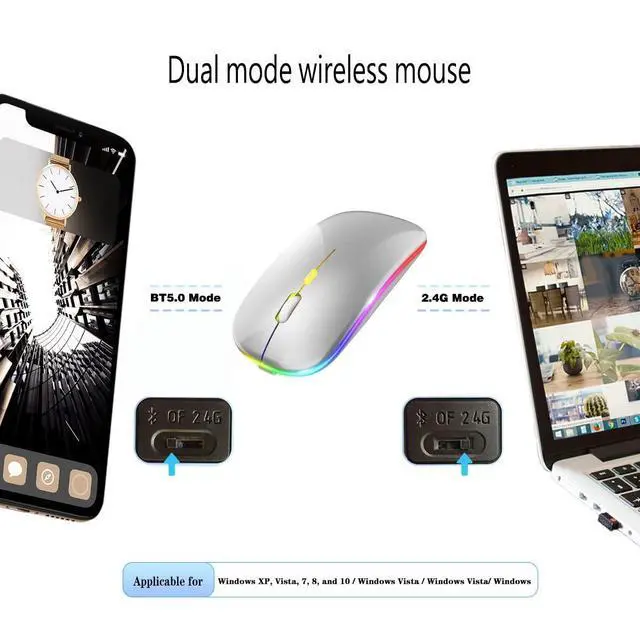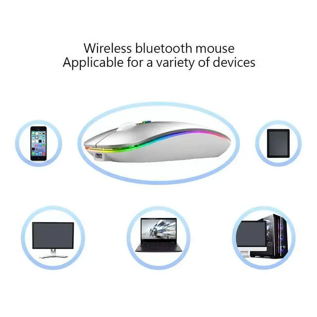 7pcs Color LED Charging Dual Mode Bluetooth Mouse (Bluetooth 5.2/3.0+USB2.4G)(Silver)