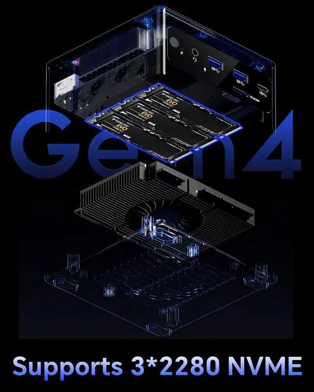 AMD Ryzen 7 6800H Mini PC with LPDDR5-6400 and M.2 2280-NVME slot x3 (support RAID 0,1,5,10)