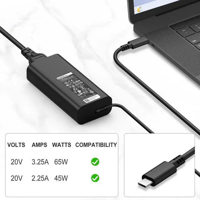 65w laptop charger USB C Compatible with Dell Latitude XPS Inspiron Chromebook