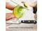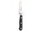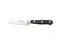 The small, narrow blade makes for the perfect knife to trim KEY_TAB and peel small produce, such as garlic cloves and herbs. The flat edge KEY_TAB provides more contact with the cutting board.