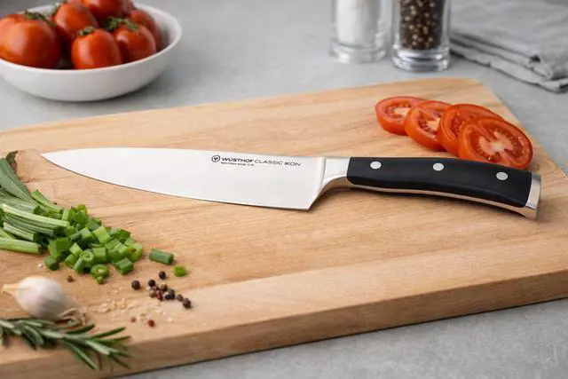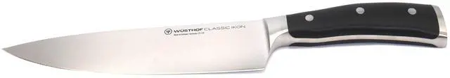 The Wusthof Classic Ikon 8 Inch Cook's Knife features a strong, versatile blade and will quickly become the most widely used knife in your kitchen. KEY_TAB Make quick work of meats, fish, or a pile of vegetables that need chopping, slicing, or dicing. KEY_TAB Wusthof Classic Ikon knives are precision forged from a single piece of chromium-molybdenum-vanadium steel. KEY_TAB Painstakingly manufactured, these knives are pure fun to work with and will turn even the preparation of a simple dish into a culinary pleasure. KEY_TAB Made in Solingen, Germany.