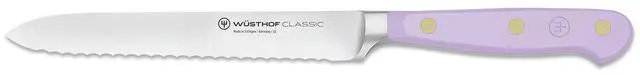 With its versatile design and top-notch craftsmanship, the Wusthof Classic 5-Inch Serrated Utility Knife is an essential tool for any home cook or professional chef. Whether you're slicing tomatoes, crusty bread, or anything in between, this knife is sure to get the job done with ease.