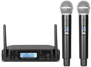 Wireless Microphones, Professional UHF Dual Microphones for Karaoke, Wireless Dynamic Microphone System Set with Rechargeable Receiver,Plug and Play, Speech, Wedding, Church, PA System