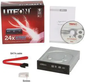 LITE-ON 24X DVD Writer Internal 24X DVD+R 8X DVD+RW 12X DVD+R DL 24X DVD-R 6X DVD-RW 16X DVD-ROM 48X CD-R 32X CD-RW 48X CD-ROM SATA Model ihas324-07