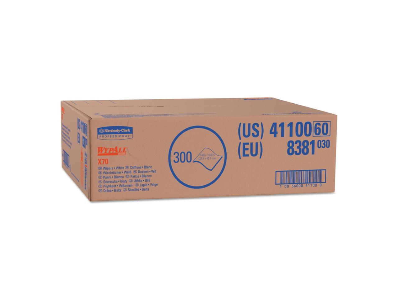WYPALL X70 Wipers, Flat Sheet, 14 9/10 x 16 3/5, White, 300/Carton