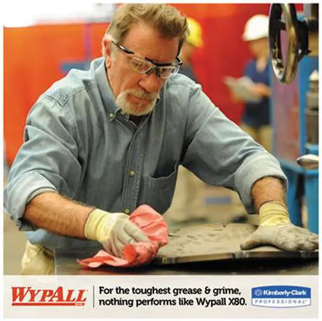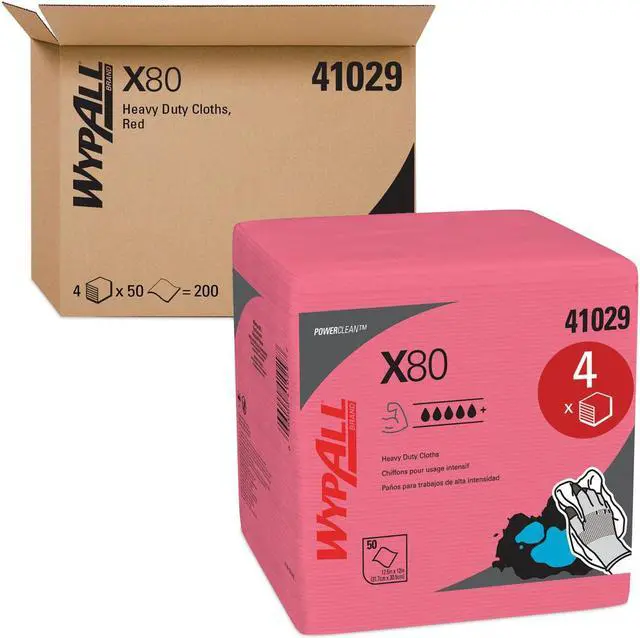 WypAll® is the number one brand of disposable wipes in the US and Canada. Maximize performance while minimizing time, effort, and product waste. If youve been using industrial cloth towels, its time to make the switch to WypAll® PowerClean X80 Cloths. WypAll® PowerClean X80 Heavy Duty Cloths feature innovations like high-tech Hydroknit® fast-absorbing material and are durable for scrubbing. WypAll® X80 cloths now absorb over 20% more oil and up to 15% more water than before. In addition, WypAll® X80 cloths now feature a tough, precision-engineered surface texture, making them even more effective for your cleaning tasks. WypAll® PowerClean X80 Heavy Duty Cloths are made of soft pulp fibers, bonded to a polypropylene base sheet for absorbency and durability, making them suitable for removing dirt, oil, grime, and solvents in industrial and manufacturing businesses. Available in jumbo roll, quarter-fold, and box formats, WypAll® X80 cloths are reusable and reinforced for strength when wet and dry. These bulk cloths are a great alternative safer and more efficient to replace laundered rental shop towels and cleaning towels. These premium industrial cleaning cloths can be used for heavy-duty machine and part wiping, wiping metal shavings, prepping surfaces with solvents, and cleaning rough surfaces. When youre running a business, it pays to use the very best supplies. For the toughest grease and grime, trust the performance and innovation of WypAll® PowerClean X80 Heavy Duty Cloths.
