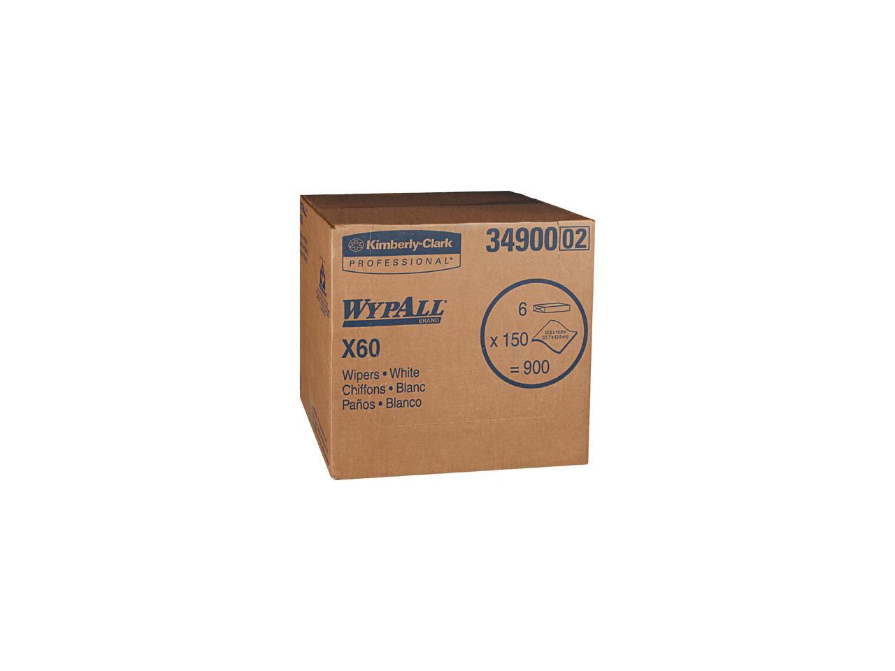 WypAll X60 Reusable Cloths (34900), White, Flat Sheets, 150 Sheets / Pack, 6 Packs / Case, 900 Wipes / Case