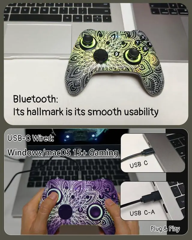- Seamless Switching: Your saved Bluetooth pairings remain active even when using the wired connection. Switch effortlessly between wired and wireless modes across your devices without any reconfiguration.