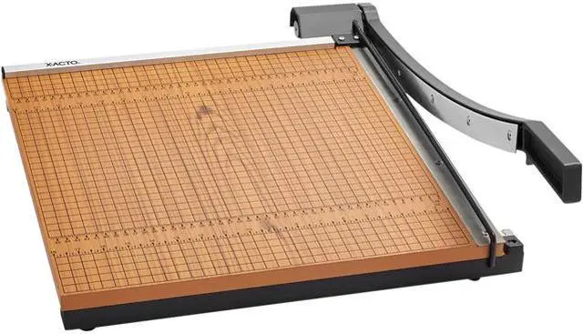 | Specifications | Accurate and efficient, the Commercial Grade Guillotine Trimmer cuts high volumes of paper with ease. With the ability to cut up to 20 pages at once, this trimmer creates quick and accurate cuts to paper of all sizes. Designed for school and office settings, this trimmer features a solid wood base for steady cutting. The Perpetual Edge self-sharpening system keeps the blade sharp for clean cuts every time, while the safety guide and safety latch protect users during use. This X-ACTO trimmer is a durable and dependable precision cutting tool for workers, educators, and students alike. |