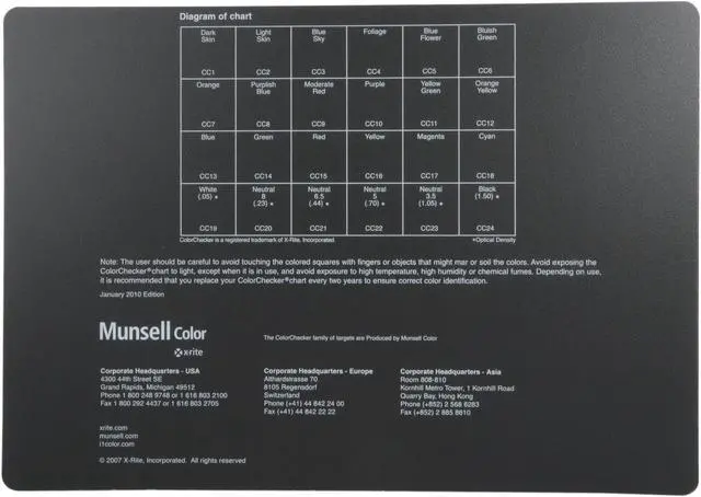 The ColorChecker Classic target is designed to deliver true-to-life color reproduction so photographers and filmmakers can predict and control how color will look under any illumination. Each of the 24 colors represents the actual color of natural objects and reflects light just like its real-world counterpart. Use it to compare, measure and analyze differences in color reproduction and avoid costly mistakes with trial-and-error color adjustments while editing images.