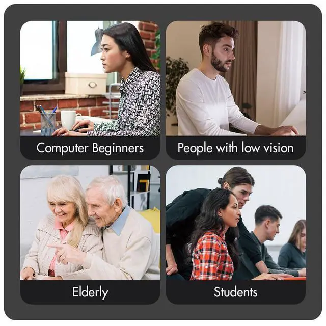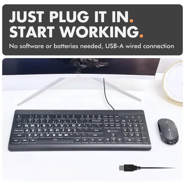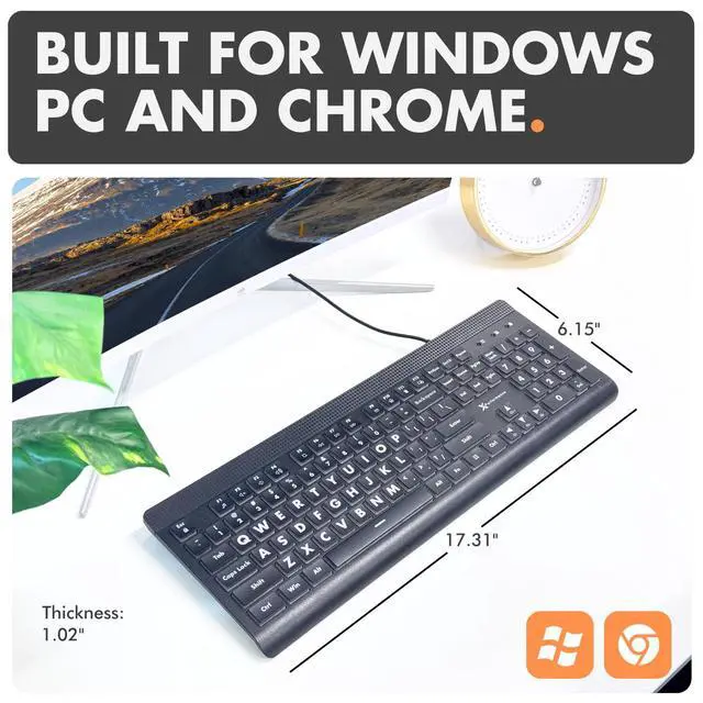 SEE WITH EASE, TYPE WITH CONFIDENCE Featuring large, bold print, this large font key board makes every character easy to see. A great solution for seniors, students, and visually impaired users who want a more comfortable computer keyboard experience.