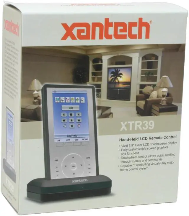 The XTR39 Color LCD touchscreen remote control from Xantech is the perfect solution to the clutter of difficult-to-use remote controls that accompany most home theater systems. The XTR39 is a stylish, simple-to-use remote control that can be personalized via its vivid full color 3.9" touchscreen display: button layout can be customized; easily identified icons created for virtually any function or command; and multiple screen pages allow less frequently used buttons to be concealed.