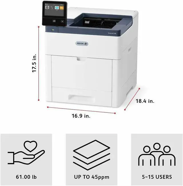 Xerox VersaLink C500 Colour Printer and Xerox VersaLink C505 Colour Multifunction Printer: Designed for fast-paced workteams, the VersaLink C500 Colour Printer and C505 Colour Multifunction Printer deliver a higher level of reliable performance. Cloud connected, mobile ready, app-enabled, and easy to customise, the C500 and C505 are your modern workplace assistants - helping you excel today and stay ready for the future. POWERFUL , RELIABLE, SECURE.: Right out of the box, you'll count on your VersaLink C500 or C505 to consistently and flawlessly perform the tasks that make your business work more efficiently. From IT-free installation wizards, to step-by-step configuration options, you're ready to go - hassle free. Completely re-engineered for superior reliability, the VersaLink C500 and C505 feature a new hardware design with fewer moving parts, and a more advanced Hi-Q LED print head. VersaLink devices are loaded with features and time-saving Xerox technologies designed to speed up information sharing and reduce inefficient workflows. Ensure information accuracy with Scan and Fax preview1, and do more with scanned documents with built-in optical character recognition (OCR). When it comes to safeguarding critical information, VersaLink devices deliver a spectrum of stringent security features, including Secure Print and card authentication to control access. Count on superior print quality to make your work look its best. A print resolution of up to 1200 x 2400 dpi delivers sharp text and fine line detail, plus exceptional colour vibrancy. EASY, EFFICIENT AND ENTIRELY NEW.: With the customisable, capacitive 7-inch colour touchscreen (5-inch on the C500), you can tap, swipe and pinch your way through tasks and functions with mobilelike ease. Speed through tasks by saving common settings as presets for simple, single-touch job setup. With Simple ID, individual users and groups enter a user ID and password once, and then enjoy fast, secure, easy access to task-specific presets and commonly used apps on a personalised home screen. APP-BASED FLEXIBILITY AND MOBILE FREEDOM.: The VersaLink C500 Colour Printer and VersaLink C505 Colour Multifunction Printer give you the freedom to work where and how you want - with out-of-the-box connectivity to Google Drive, Microsoft OneDrive and Dropbox, and access to additional options through the Xerox App Gallery. The ability to connect and print from multiple devices is key for today's worker, and VersaLink devices meet the challenge with Apple AirPrint, Google Cloud Print, Xerox Print Service Plug-in for Android, Near Field Communication (NFC) Tap-to-Pair and Mopria, plus optional Wi-Fi and Wi-Fi Direct.