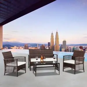 Po Wicker Furniture Outdoor 4PC Rattan Sofa Table Garden Converson Set