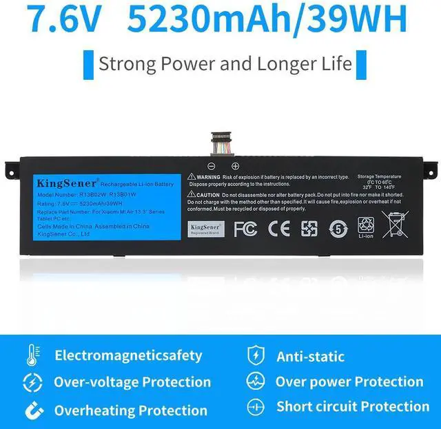 Kingsener 7.6V 5230mAh New R13B01W R13B02W Laptop Battery For Xiaomi Mi Air 13.3" Series Tablet PC 39WH