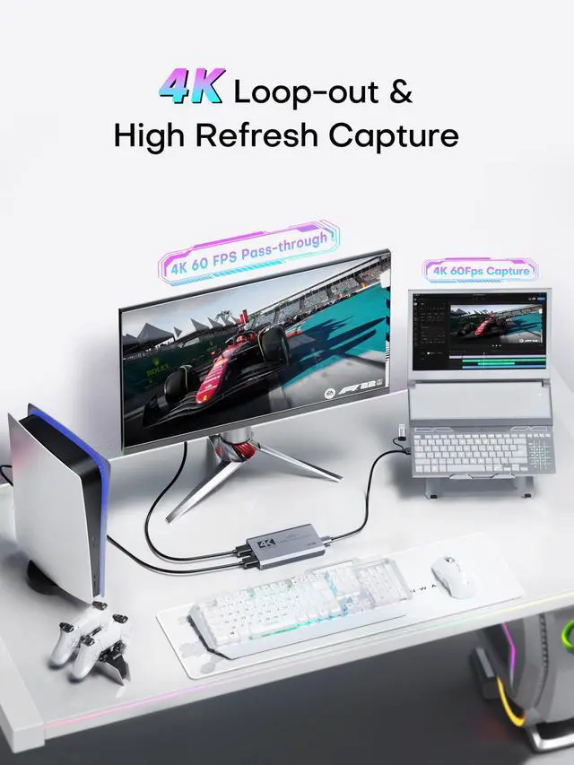 4K@60FPS Capture & 4K@60Hz PassthroughSupports up to 4K@60FPS capture via USB 3.0 and 4K@60Hz HDMI passthrough. This HDMI 4K video capture card enables real-time monitoring while recording high-quality video for live streaming, gameplay, content creation, or device mirroring