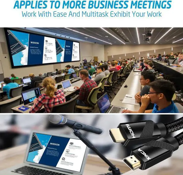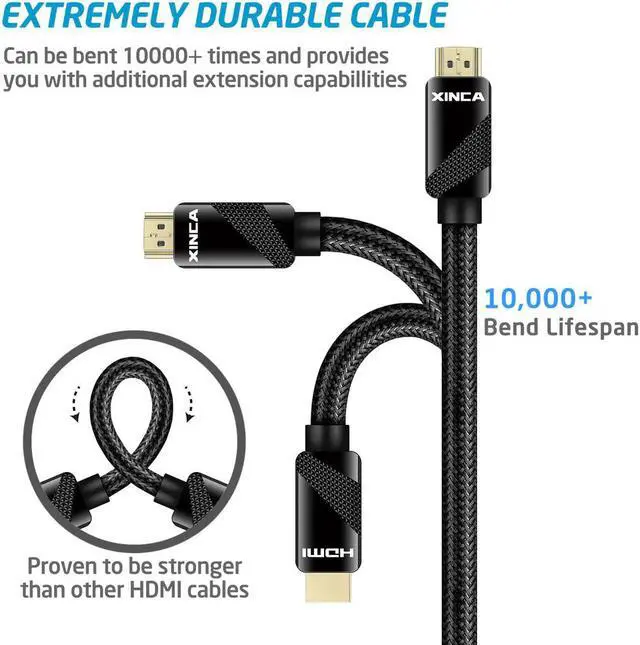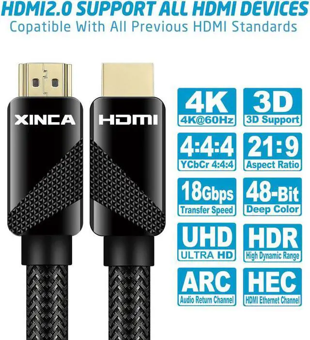 Compared with normal HDMI Cable, XINCA HDMI Cable 2.0 still transmits 4K@60Hz (High Definition) and 18Gbps high-speed bandwidth although it is 20FT. Which enables the cable to transmit steady audio, pictures, and videos in video meeting and public presentation. With HER and ARC in the cable, you can usually link the source to the monitor without using an Ethernet cable. You do not need to link the Ethernet cable separately. Besides, the anti-oxidation gold-plated socket won't rust easily after prolonged use. The PVC connector protects the chip, interface, and the black nylon housing offers increased wear resistance and CL3 fire-proof level.