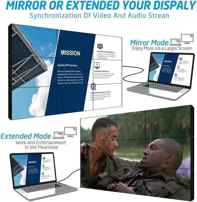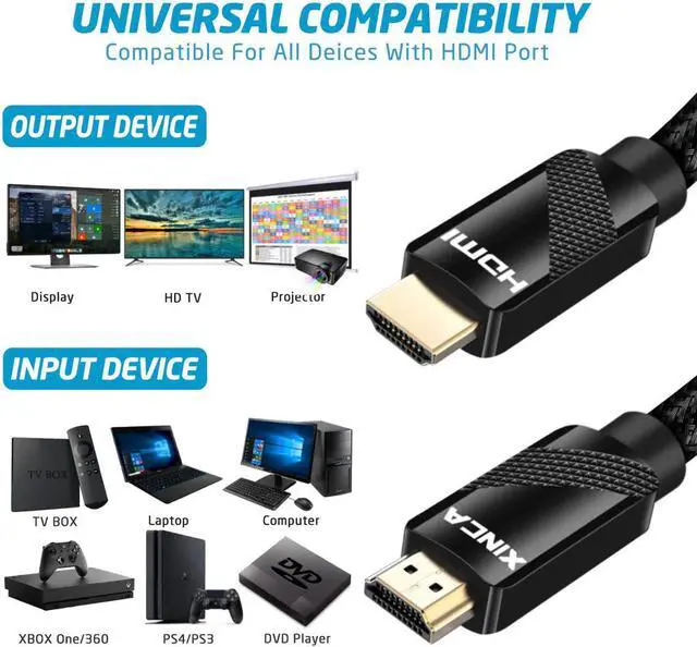 Standard HDMI Cable 2.0 interface that can be used for Home Theater, Presentations, Conferences, Churches, and other scenes. Just connect your Set-Top-Box, DVD Player, Digital Audio Device, Video Projector, Xbox 360, PlayStation 3, Wii U, Apple TV to the Ultra High-Definition Display. Plus, the TV terminal connects the DISPLAY, and the SOURCE terminal connects your Devices.