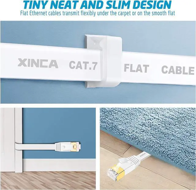 With thickness ups to 0.1in the ultra flat Ethernet cable, which protects your cable from being abraded and curved. With the presented cable clips, will not only improves the outlook of your home or office but protects the wall.