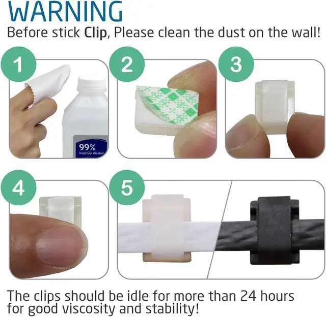 For the adhesive stability of wire clips, it is best to place flat wires after 24h.The cable clip is already in the packaging of the product and doesn't need to be purchased separately.